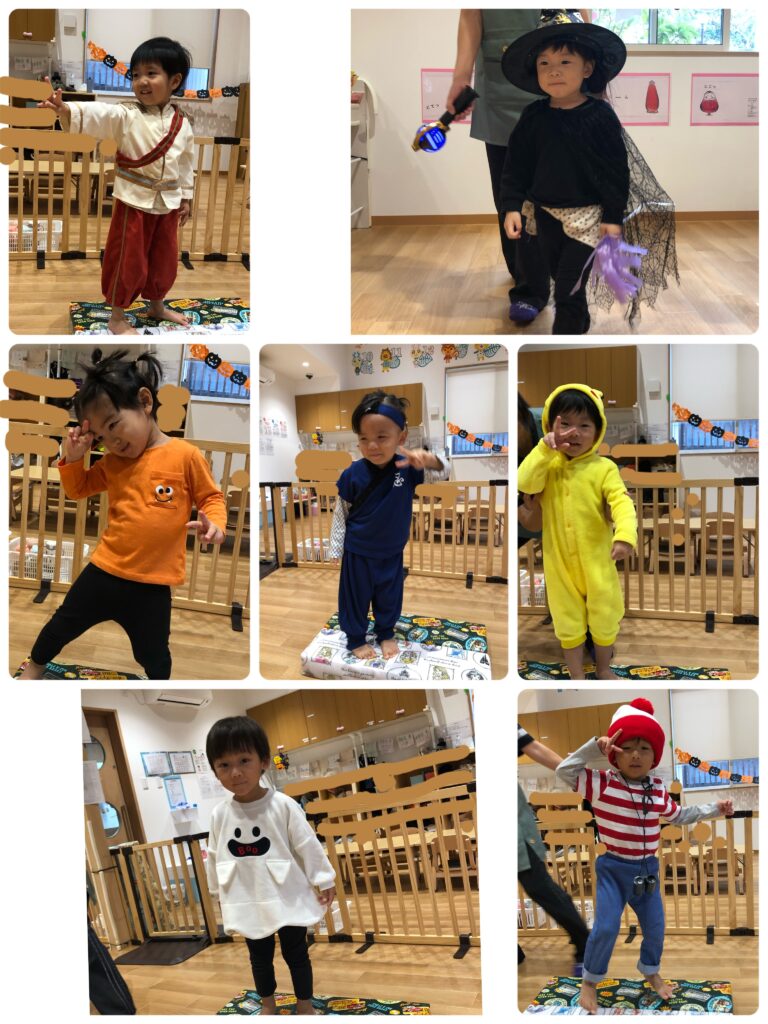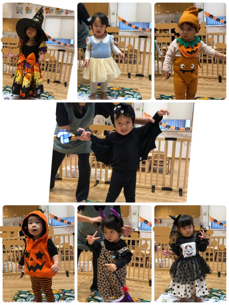 待ちに待ったハロウィン会。コスチュームを身に着けて登園した子どもたちはとっても可愛くて💖、みんなニコニコ大興奮でした😊。